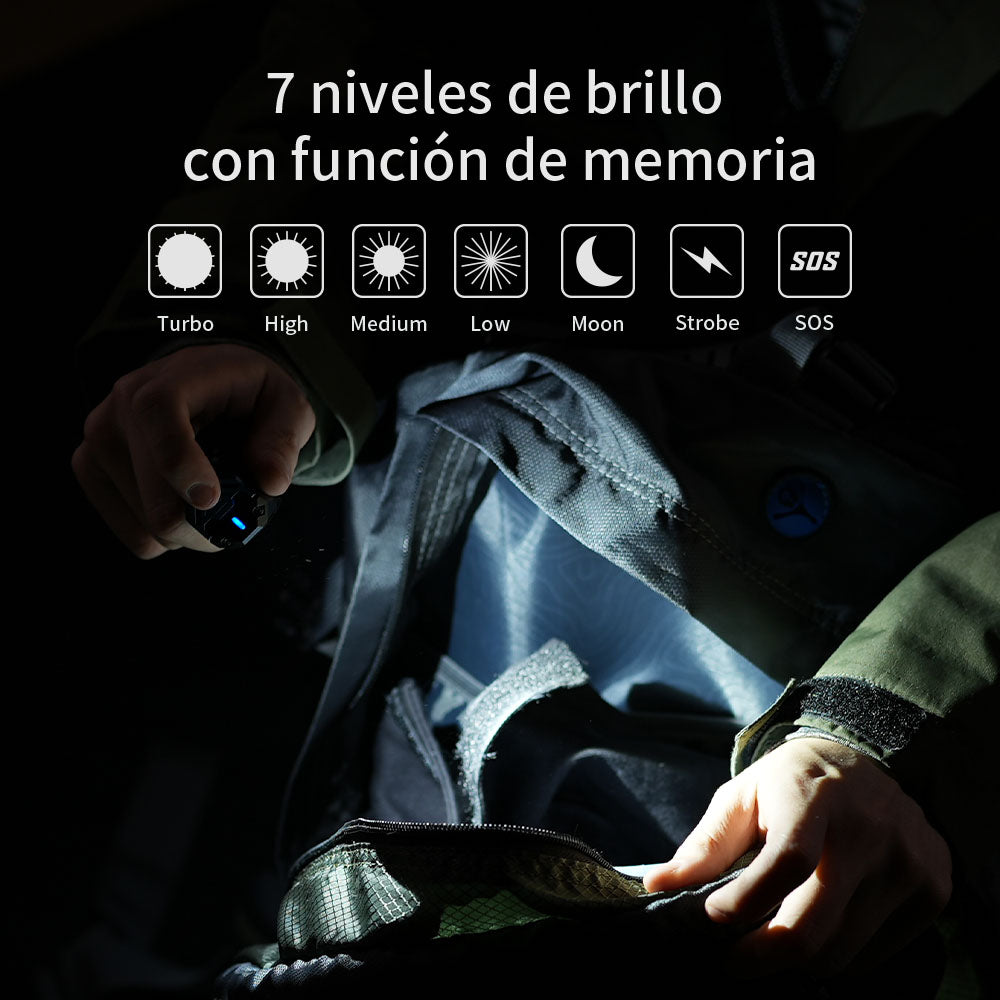 Rendimiento potente en un paquete pequeño: La X0 es la micro linterna más potente del mercado, entregando hasta 1,100 lúmenes de luz en su forma mínima. Es 40 veces más brillante que la linterna de un smartphone y comparable a una linterna táctica.